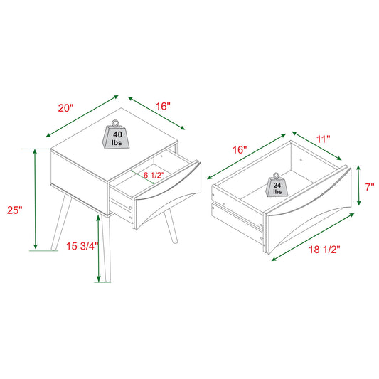 1 Drawer Waterfall Nightstand With Mid Century Design - Natural