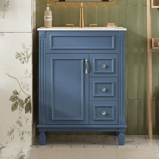 Bathroom Vanity With Ceramic Sink, Compact Cabinet With 2 Drawers And Adjustable Shelf - Blue