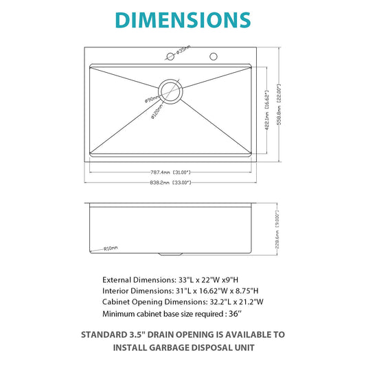 Sink 33" Double Bowl Apron Front Kitchen Sink 50 / 50 - White