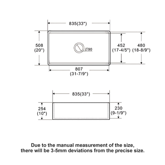 Sink 33" Double Bowl Apron Front Kitchen Sink 50 / 50 - White