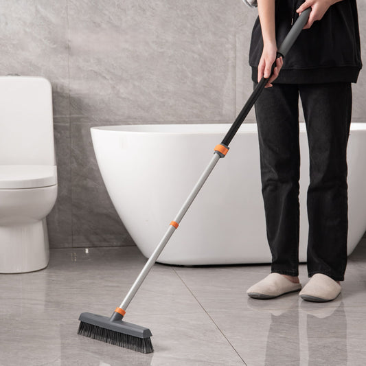 Adjustable Floor Brush With Squeegee Powerful Cleaner For Concrete, Tile, Bathrooms, Kitchens, Garages, And Pools - Black
