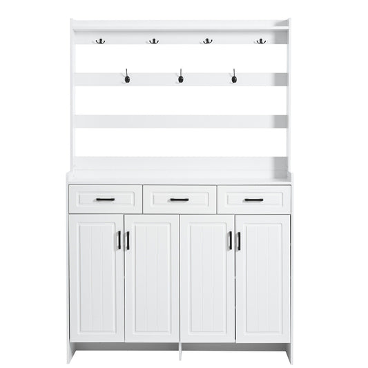 Minimalist 4 Door Shoe Cabinet With Coat Rack, 3 Drawers, 8 Shelves, Metal Hooks And Handles