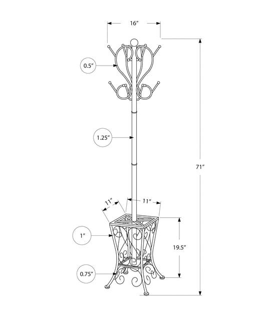Coat Rack, Hall Tree, Free Standing, 12 Hooks, Entryway, 70"H, Umbrella Holder, Contemporary & Modern