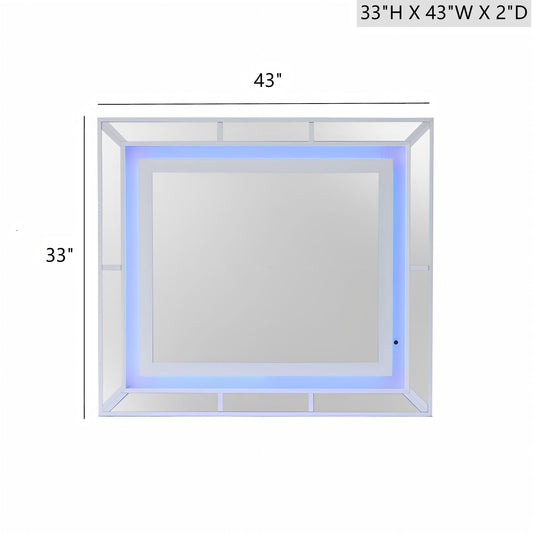 Adalid - Square Shaped Mirror With LED Lighting And Glittered Detailing - White