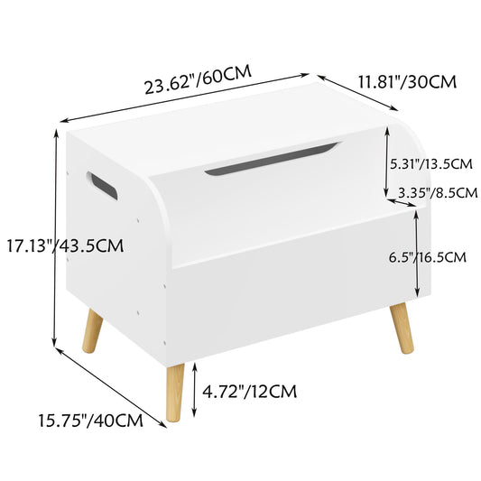 Toy Box With Front Bookshelf, Flip Top Lid, Safety Hinge For Kids Room Organization - White