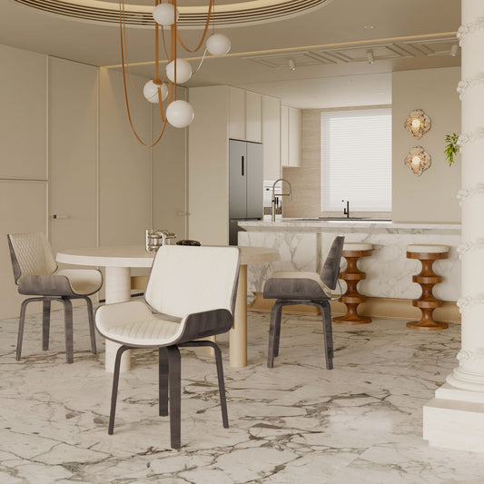 Mid Century Modern Dining Chair 360° Swivel, Ergonomic Design Upholstery, Bentwood Frame, (Set of 2) - Beige