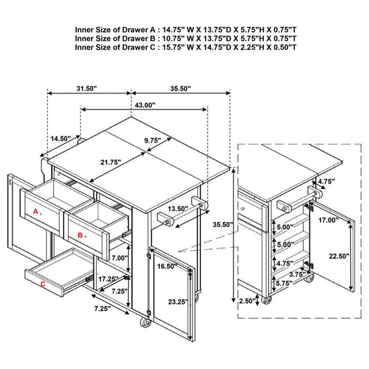 Jalen - 3 Door Mobile Kitchen Cart - Natural Brown And White
