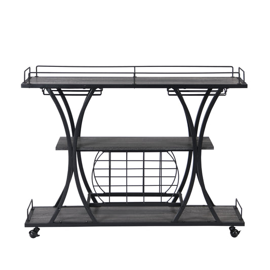 Bar Cart Kitchen Bar & Serving Cart For Home With Wheels 3 Tier Storage Shelves - Black / Gray