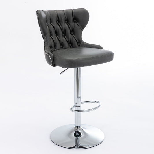 Swivel Barstools Adjusatble Seat Height From 25-33", Modern Upholstered Chrome Base Bar Stools With Backs Comfortable Tufted For Home Pub And Kitchen Island