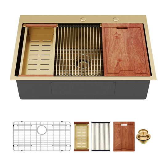 Double Bowl Farmhouse Sink Workstation 33" Stainless Steel 16 Gauge Apron Front - Black / Gray