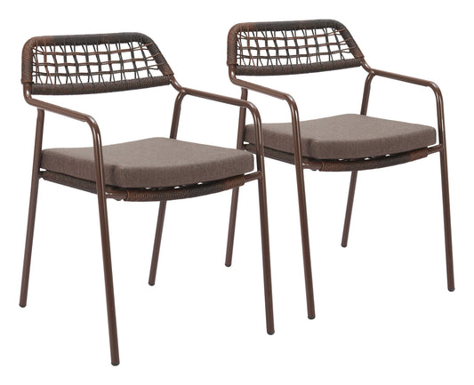 Maiden - Barrel Back Aluminum & Rope Outdoor Patio Dining Chair, Sunproof Olefin (Set of 2)