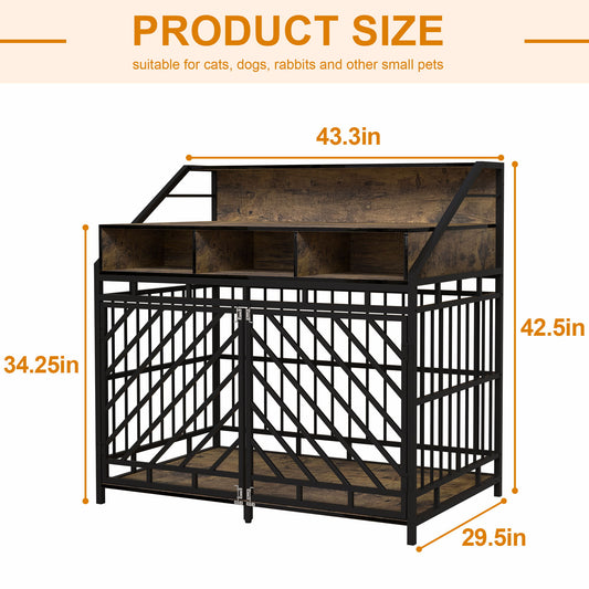 Heavy Duty Dog Cage Pet Crate With Roof & Window On Roof - Black
