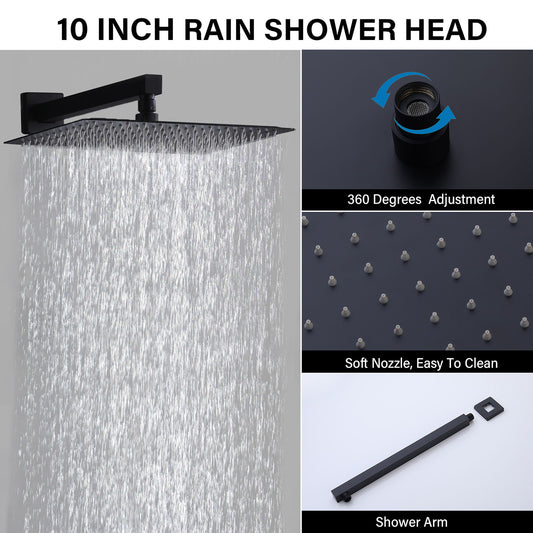 Dual Shower Head System With Rainfall Design, 10" Wall Mounted Square Shower Set - Matte Black
