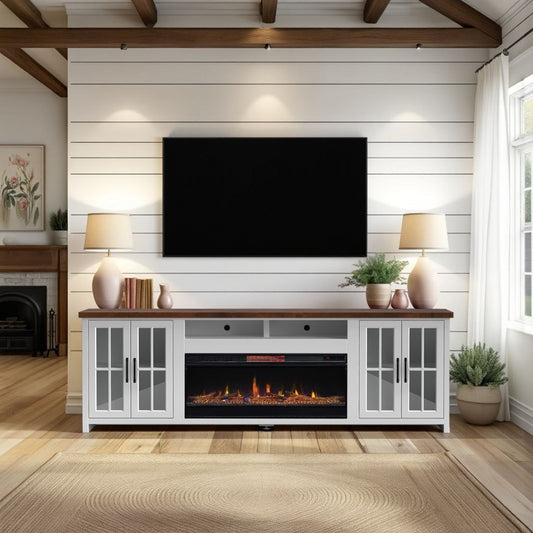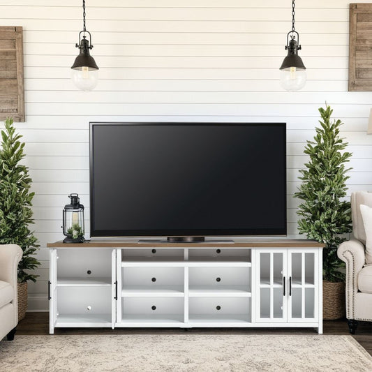 Modern Farmhouse 2 Door Glass Windowpane 70" TV Stand For 80" TVs
