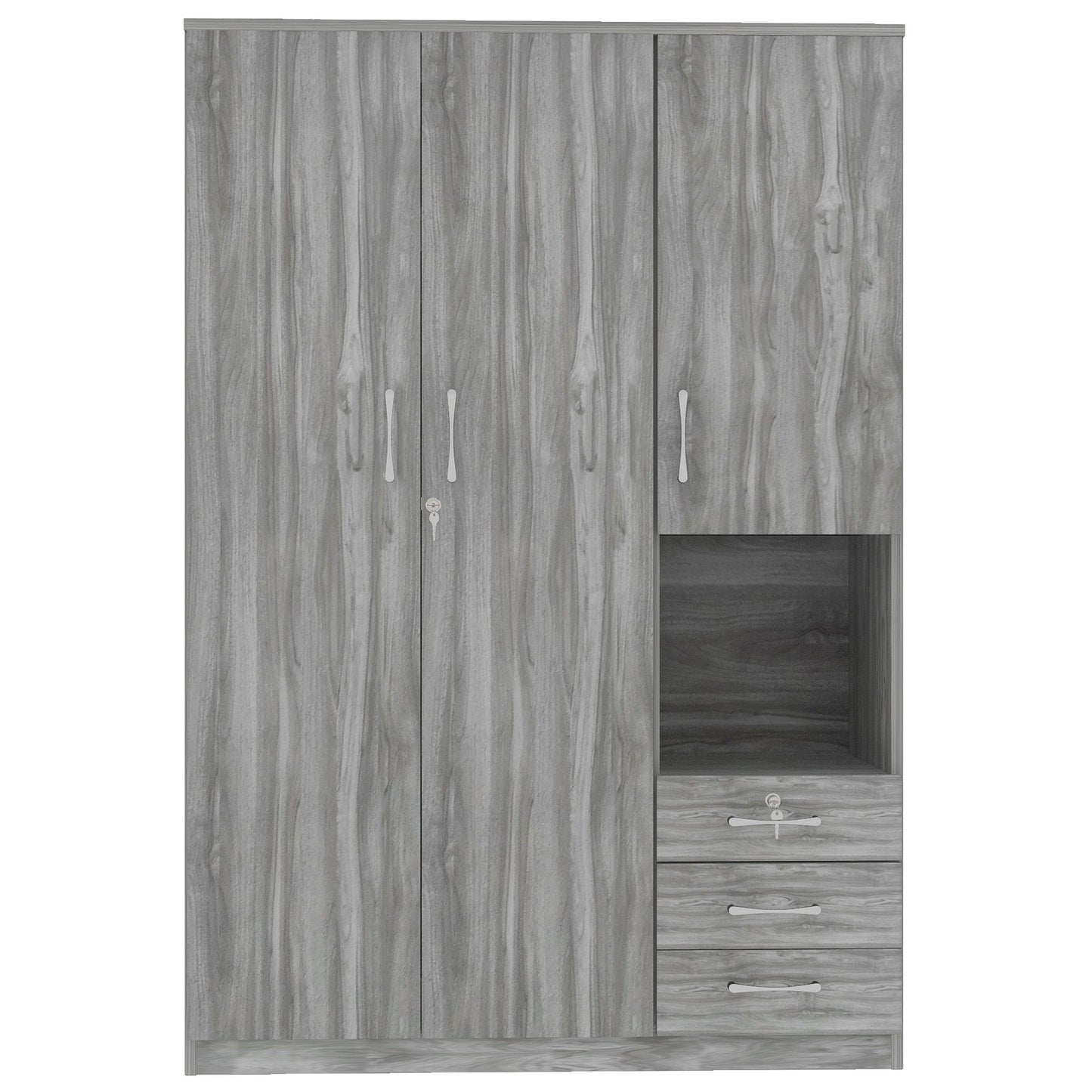 2 Doors Wardrobe Storage For Bedroom With Shelves And 3 Drawers - Gray