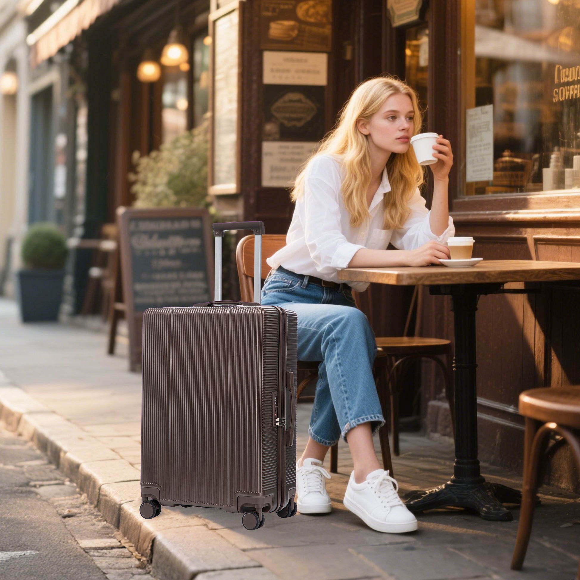 20" / 24" / 28" 3 Pieces / Set Spinner Wheel Luggage, Carry On Suitcase, Matching Color, TSA Combination Lock - Brown