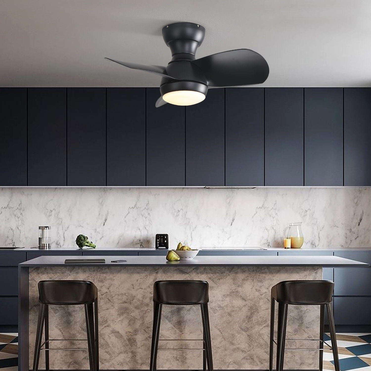 23" Bedroom Ceiling Fan With 3 Color Dimmable 3 ABS Blades Remote Control Dc Motor Black With 18W Led Light