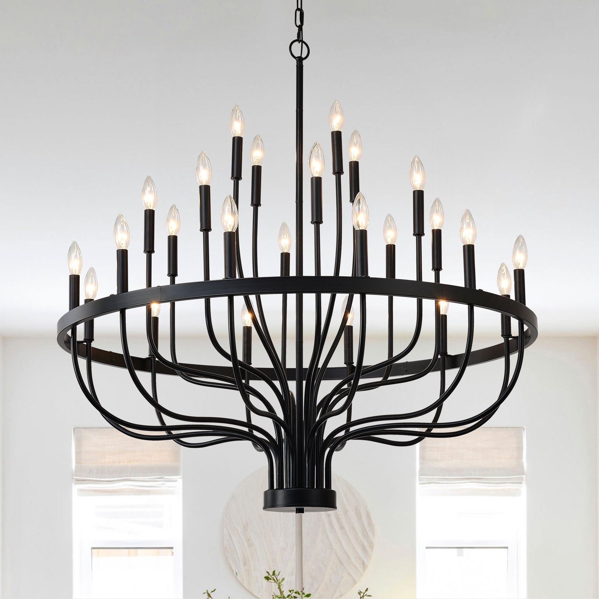 24 Light Chandelier Industrial Iron Candle Chandelier Modern Suspended Farmhouse Chandeliers Pendant Light Fixtures For Dining Room Bedroom Living Room Kitchen Island Foyer E12 Bulb (No Include) - Black