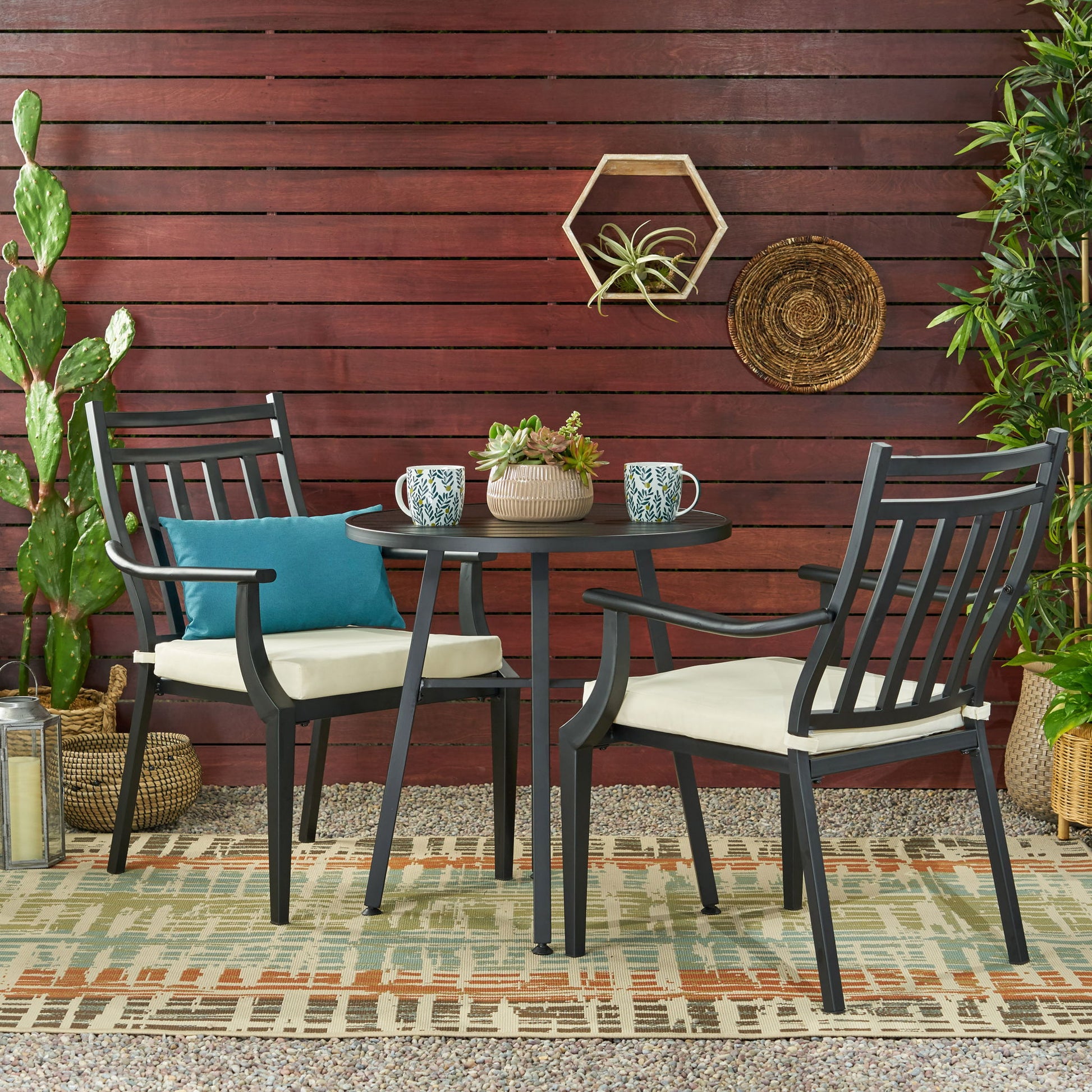 3 Piece Metal Bistro Set With 2 Curved Armrest Chairs - Black