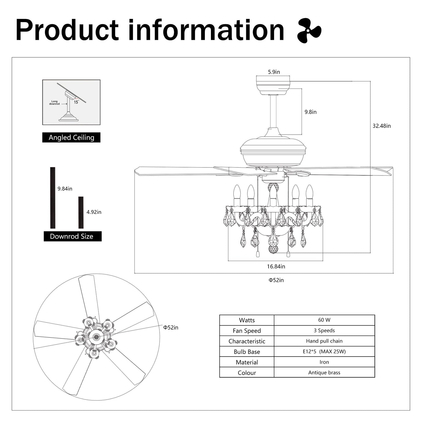 - Versatile Installation: Compatible with standard or angled ceilings, includes two down rods.