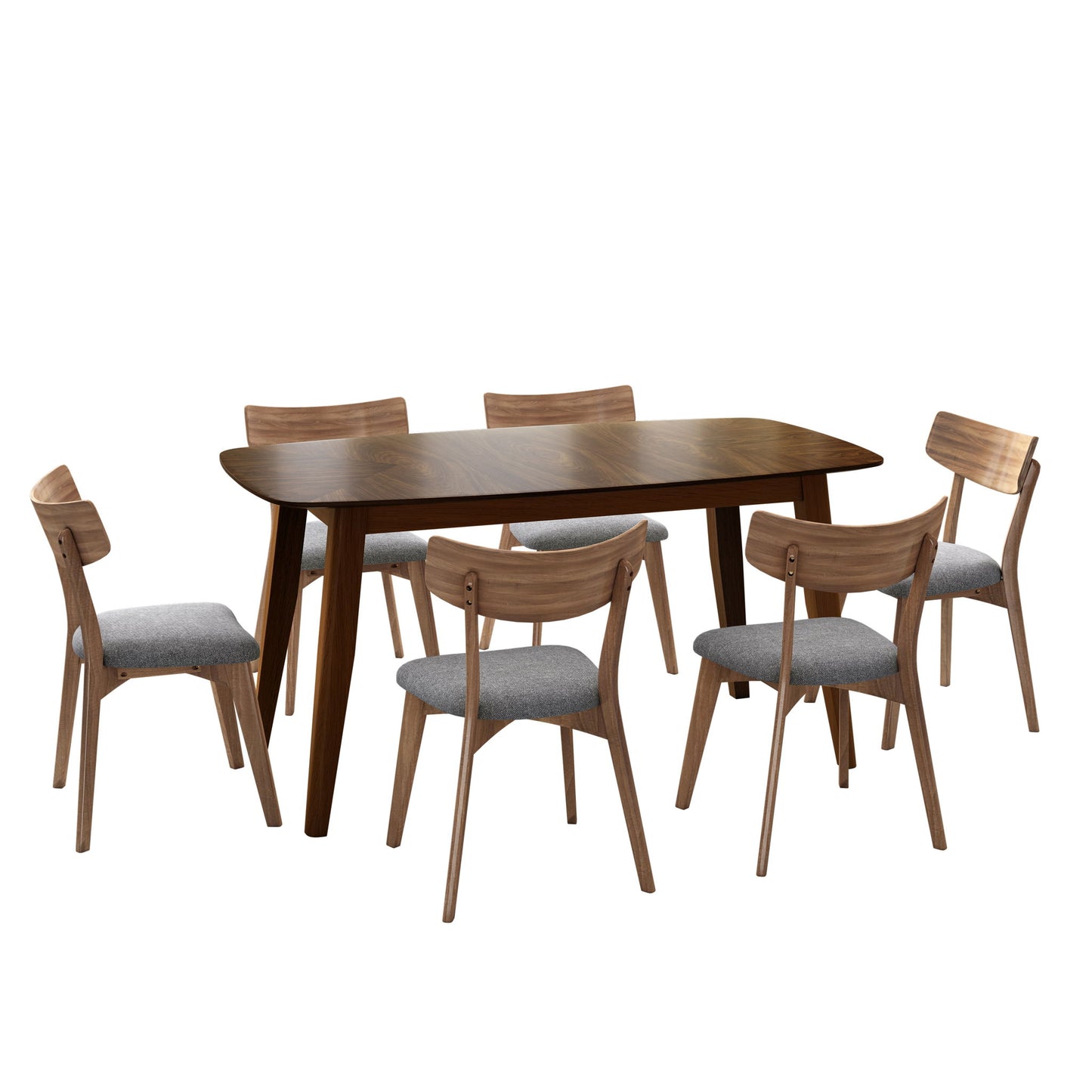 7 Piece Mid - Century Dining Set With Upholstered Dining Chairs, Dining Table
