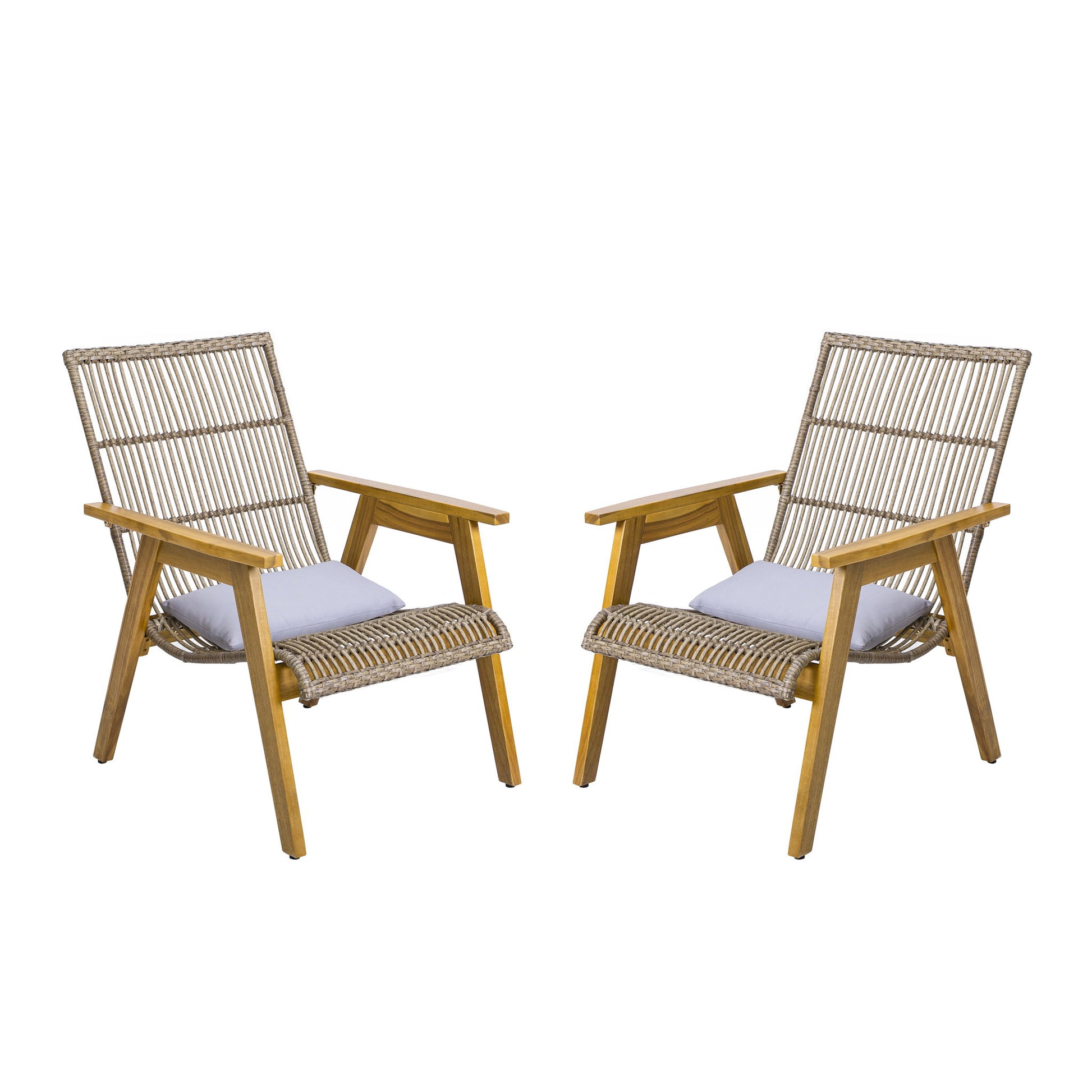Acacia Wood Cape Woven Wicker Large Lounge Chair With Pillow For Patio, Deck, Yard, Lawn And Garden Seating Wicker (Set of 2) - Teak