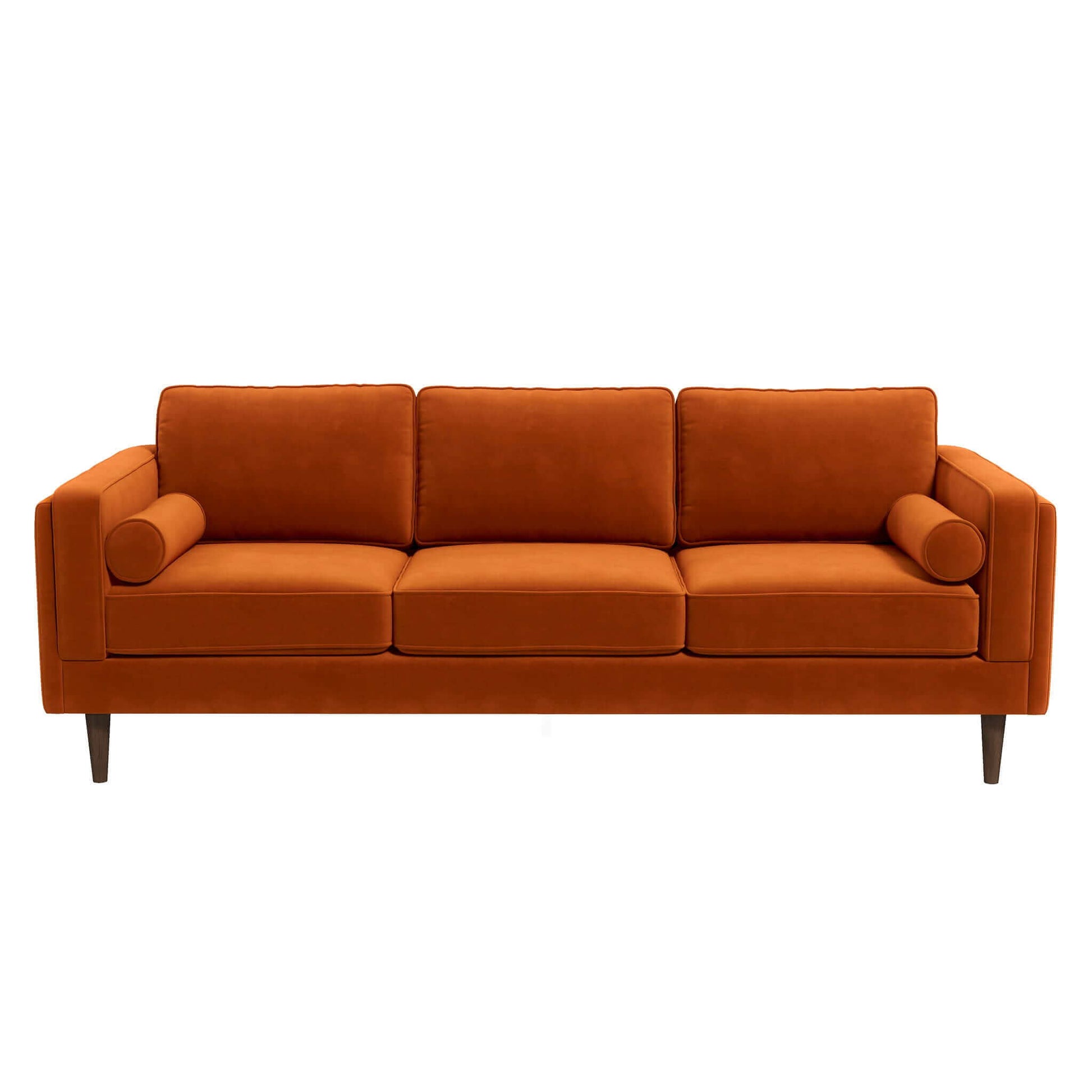 Amber - Mid-Century Modern Luxury Modern Velvet Sofa - Brown / Burnt Orange