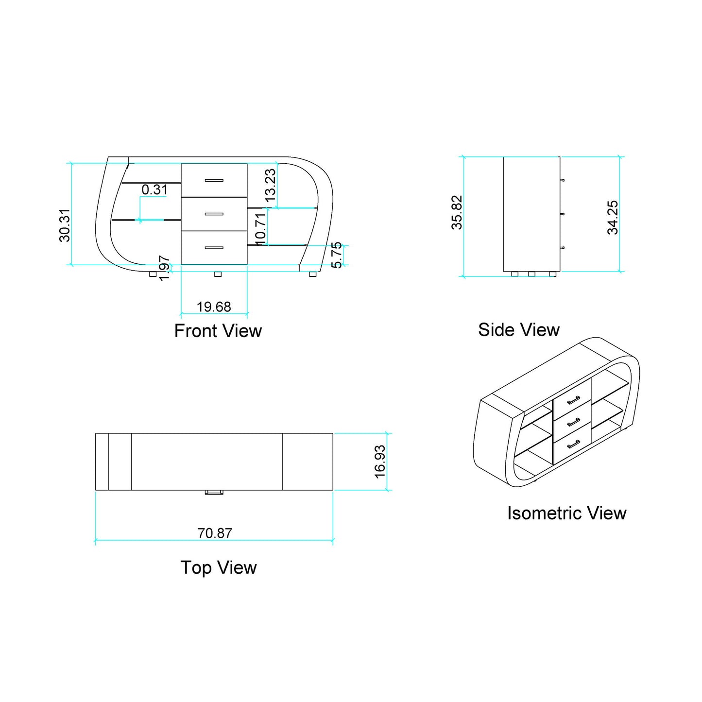 - Ample Storage: Includes a top shelf, bottom shelf, and drawers for versatile storage options.
