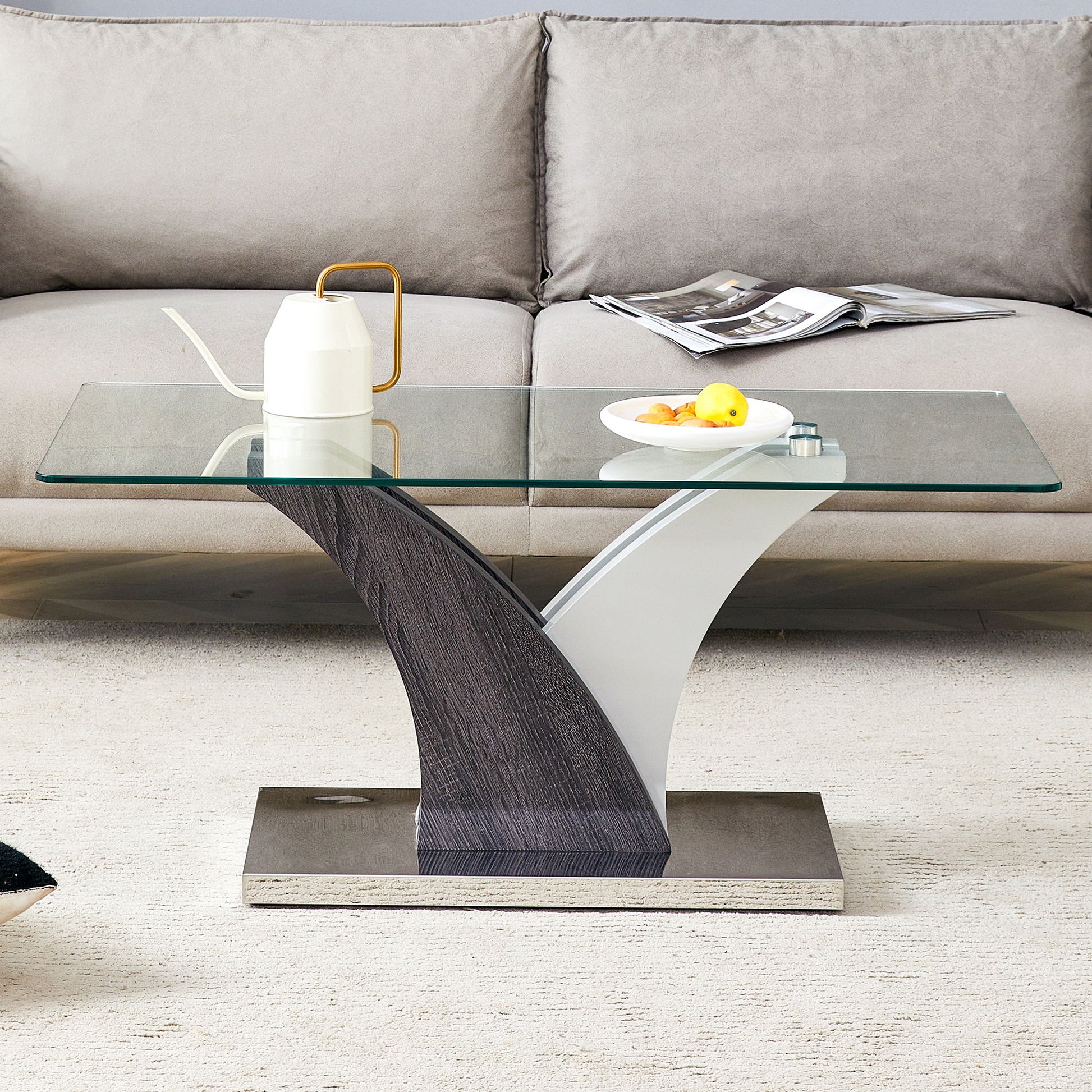 Artistic Rectangular Coffee Table With Tempered Glass Countertop - Gray / White