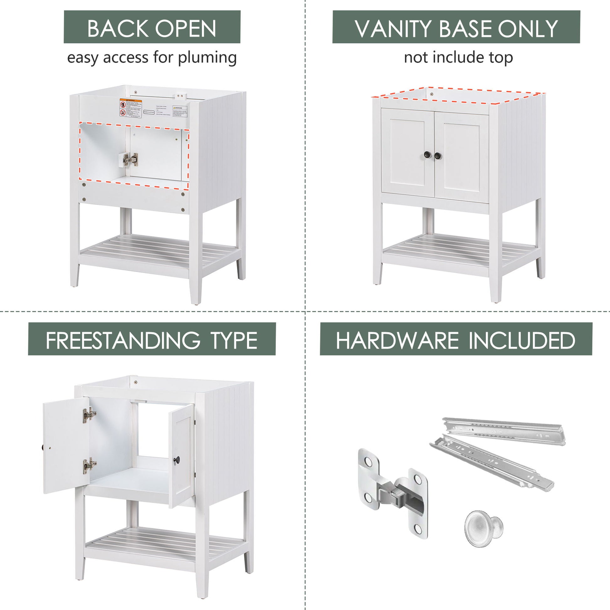 Bathroom Vanity Base Only, Soild Wood Frame, Bathroom Storage Cabinet With Doors And Open Shelf - White