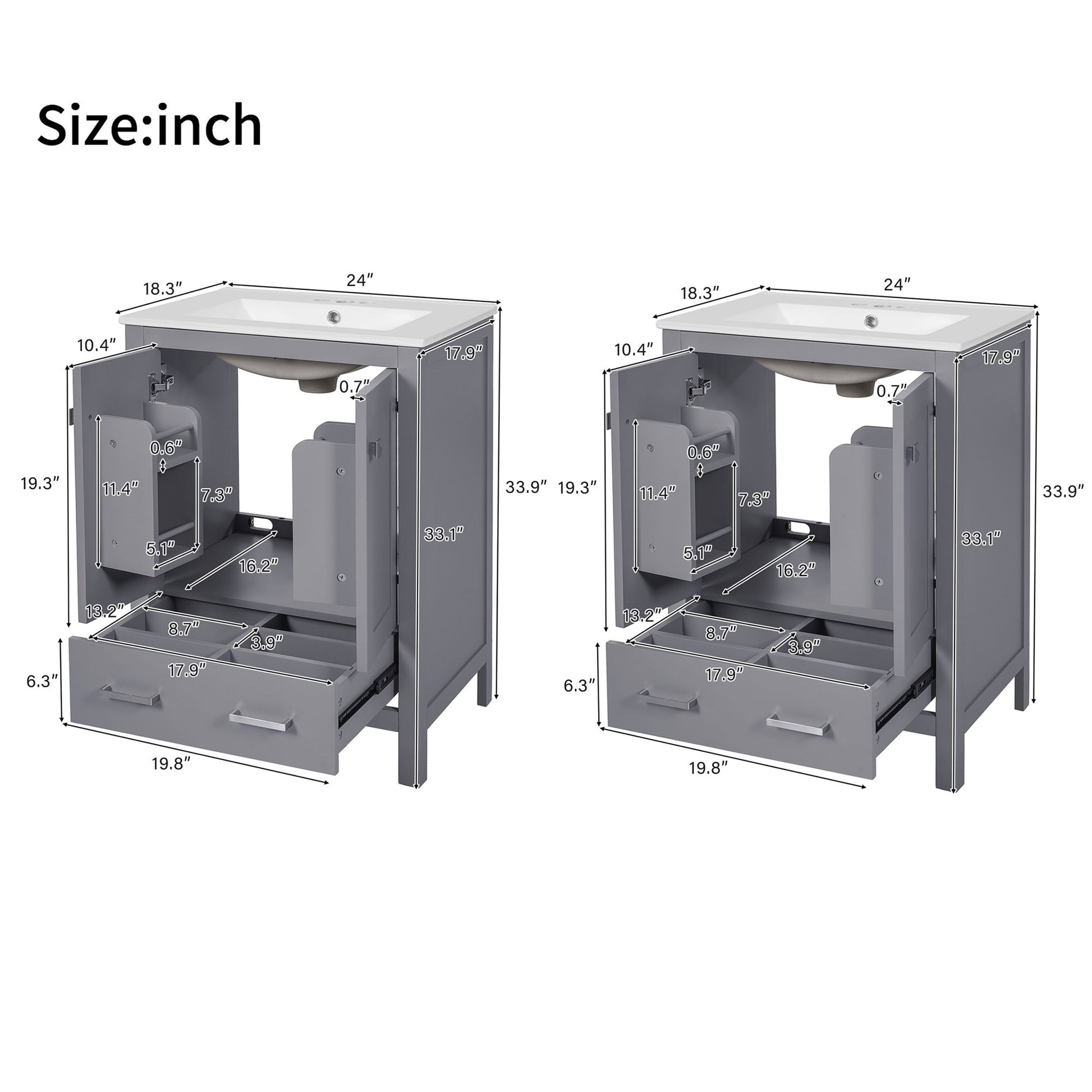 24" Bathroom Vanity With Integrated Undermount Sink, 2 Doors 1 Drawer, Soft Close Hinges, - Gray