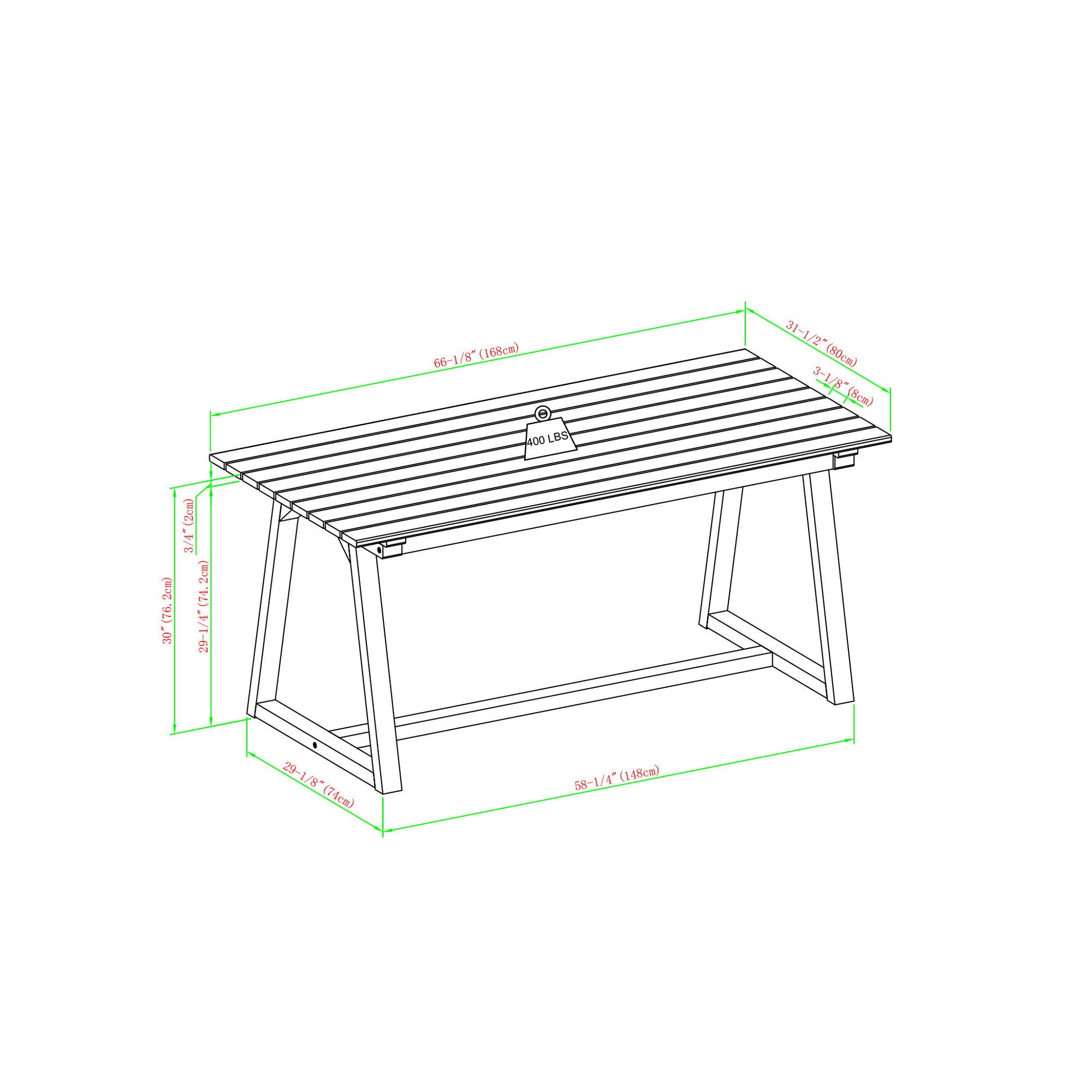 Contemporary Solid Wood Slat Top Patio Dining Table