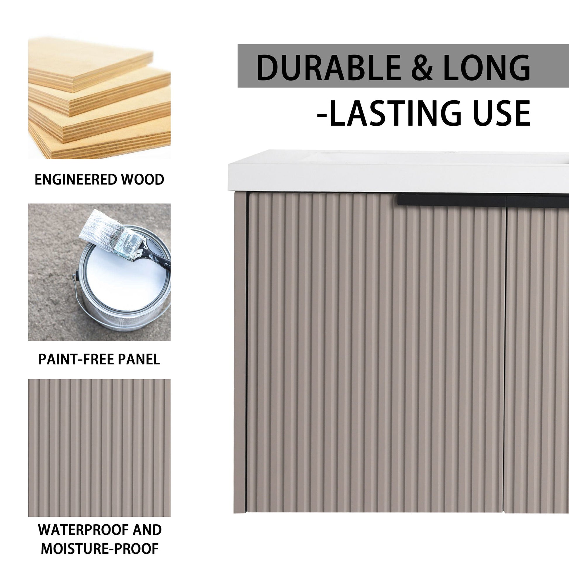 Contemporary 48" Wall Mounted Bathroom Vanity With 3 Soft Close Doors - Khaki
