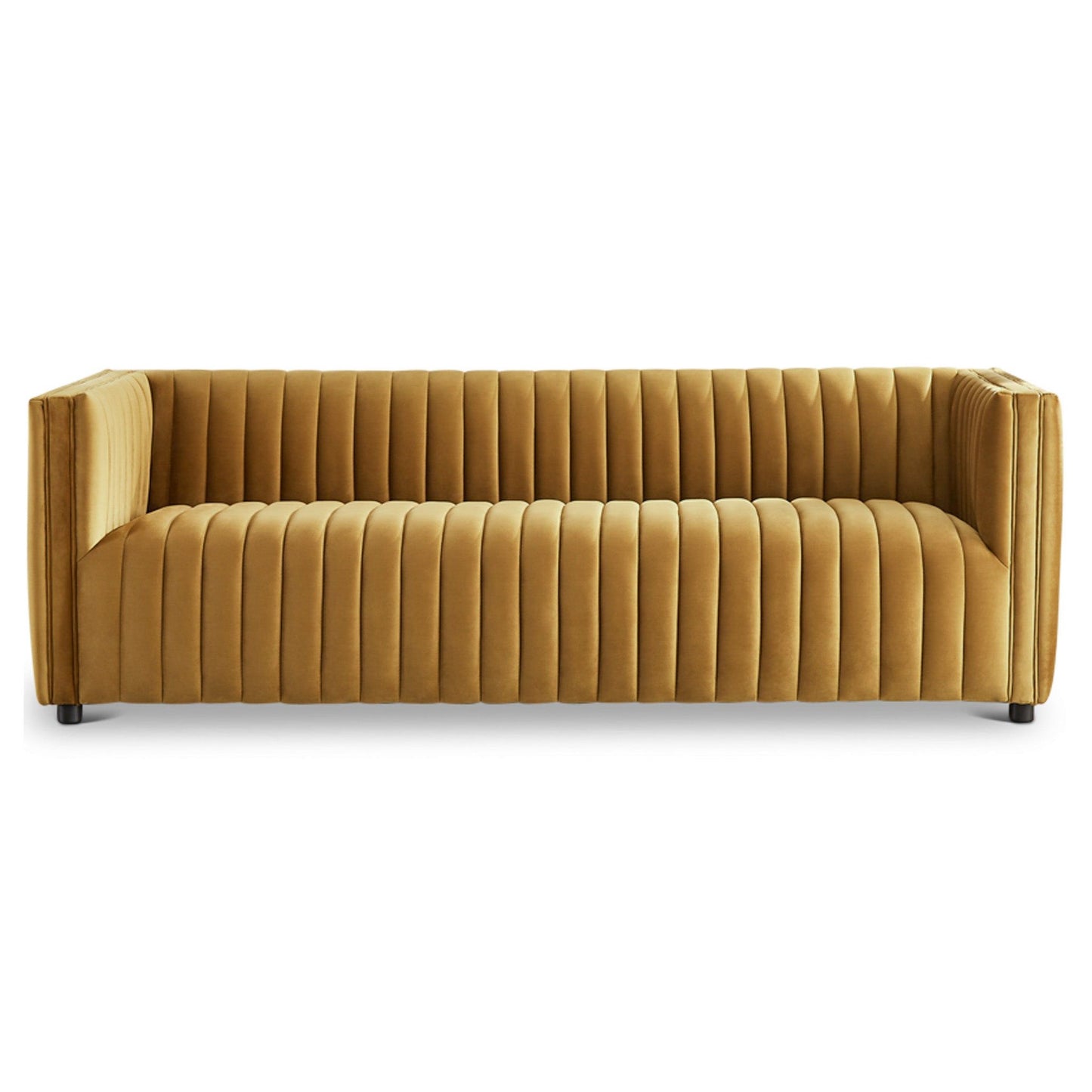Dominic - Channel Tufted Velvet Sofa - Dark Yellow