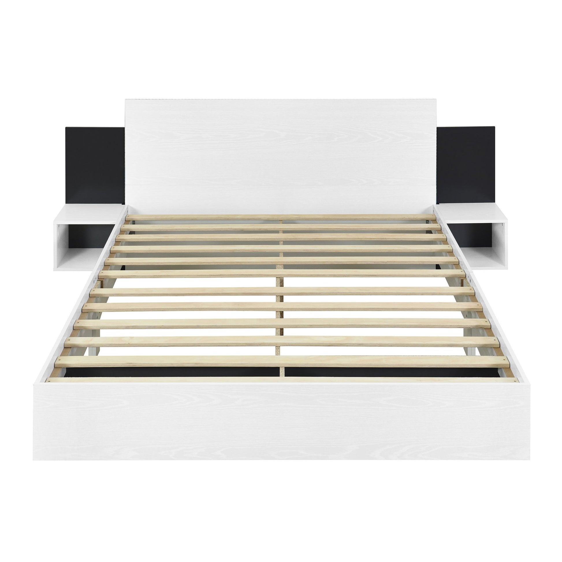 Built-in Nightstands: Conveniently attached on both sides of the bed, these nightstands provide space for lamps, books, or personal items, blending practicality with design.