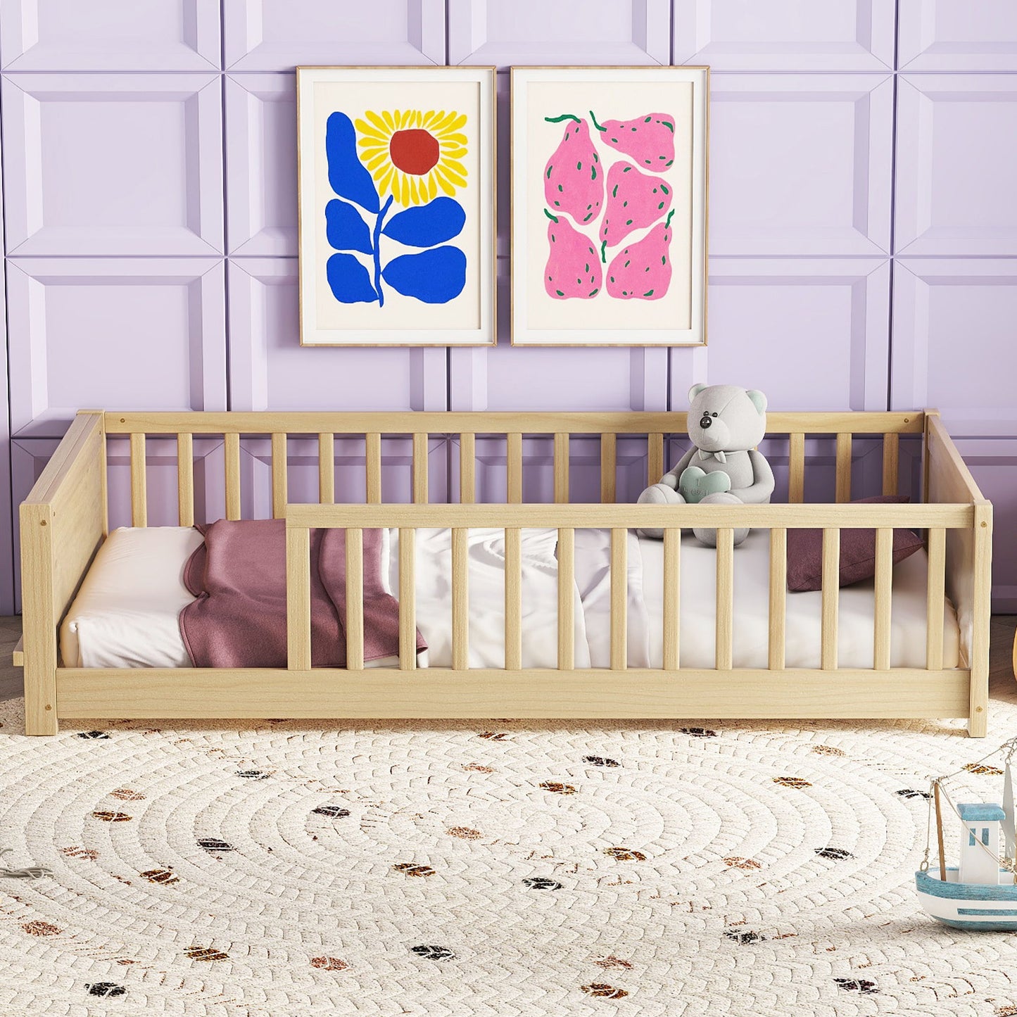 Practical and Protection Design: Ideal for compact rooms with limited space, featuring guardrails around the bed to prevent accidental falls.