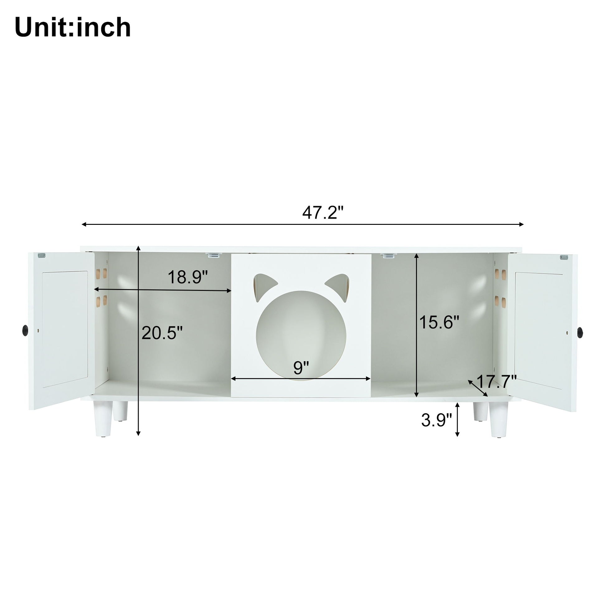- DESIGN: Furniture style PET FRIENDLY Cream white cabinet cat litter box with side table and scratchers board.