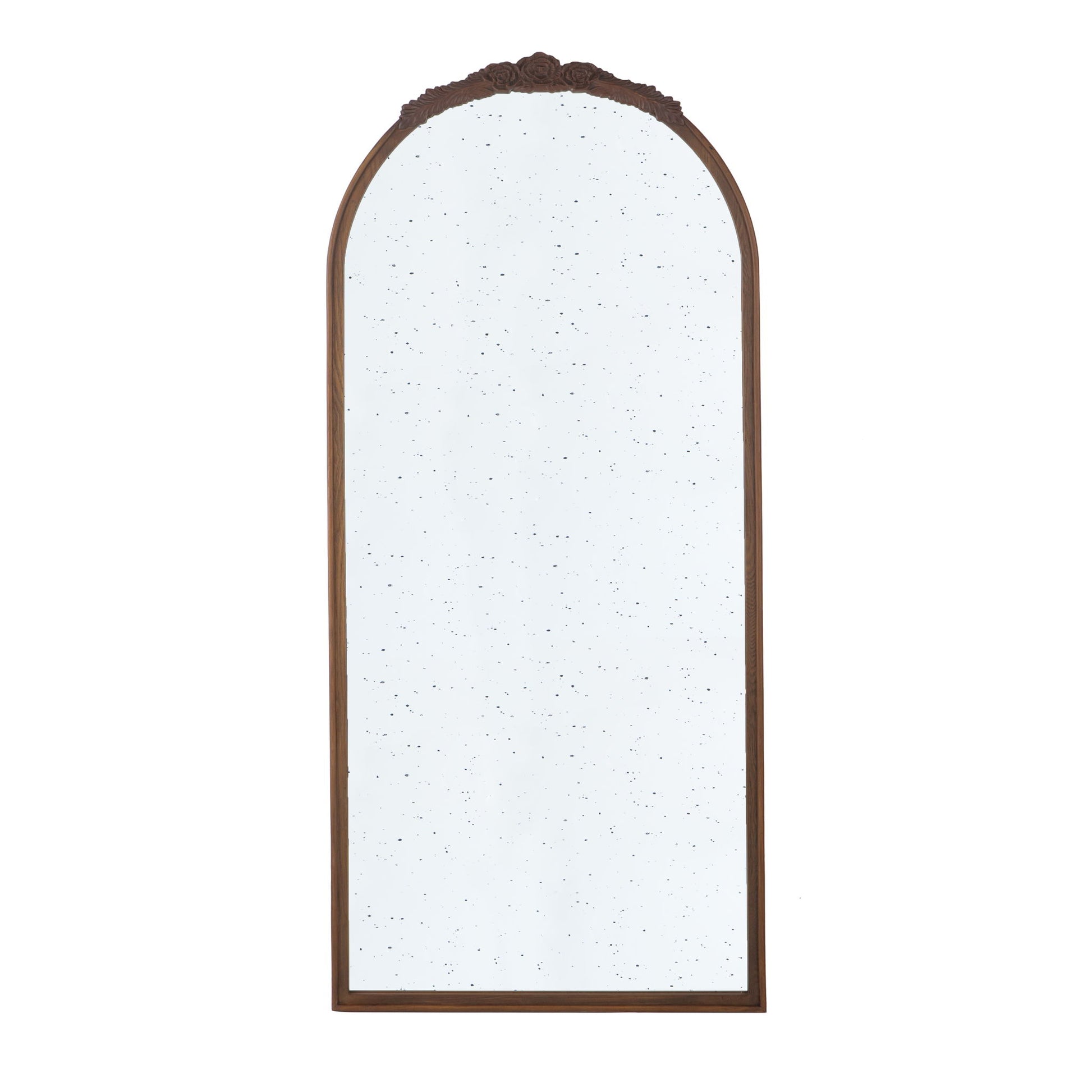 Hand Carved Rose Antique Mirror Frame, Large Arch Mirror Wall Decor For Living Room, Bathroom, Entryway - Brown