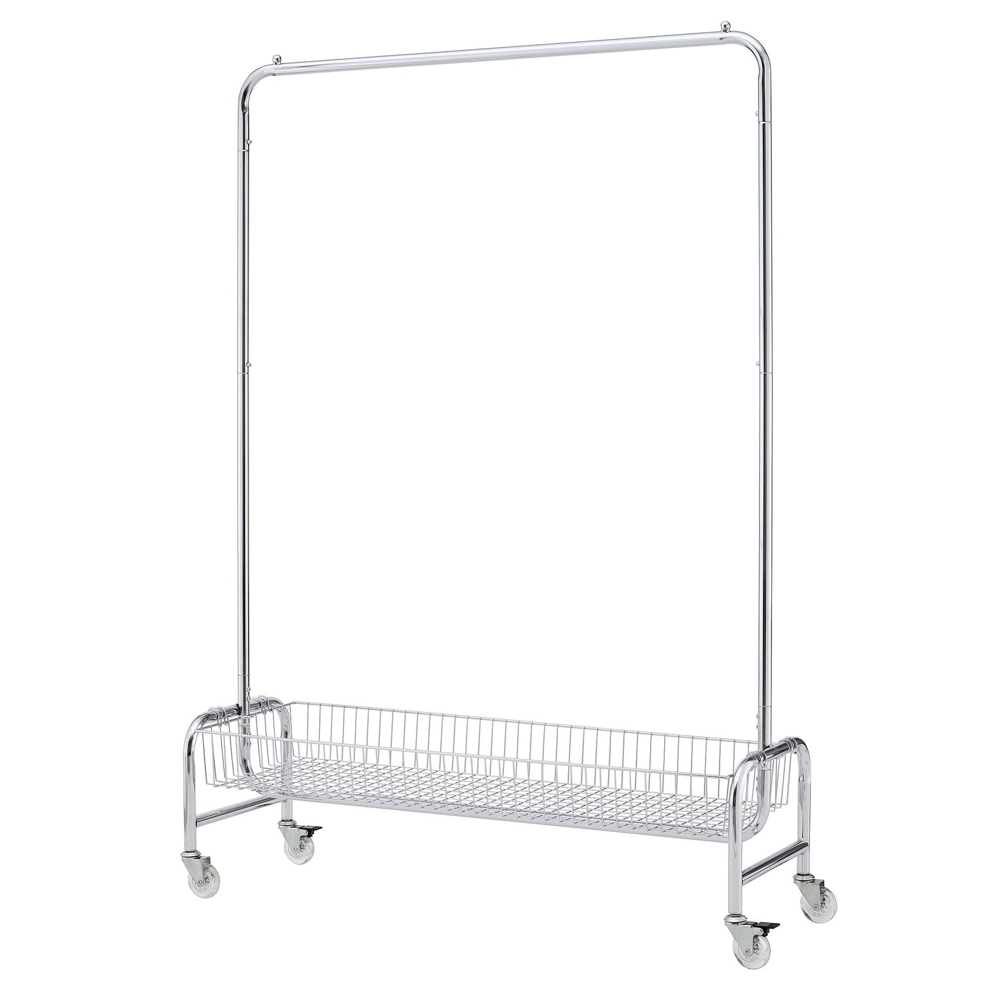 Heavy Duty Iron Garment Rack With Basket On Wheels - Silver