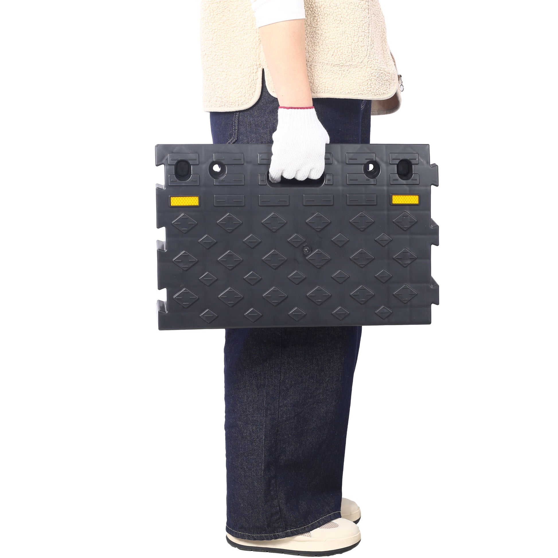 Heavy Duty Plastic 4" High Portable Automotive Curb Ramp For Cars & Wheelchairs Interlocking Design - Black