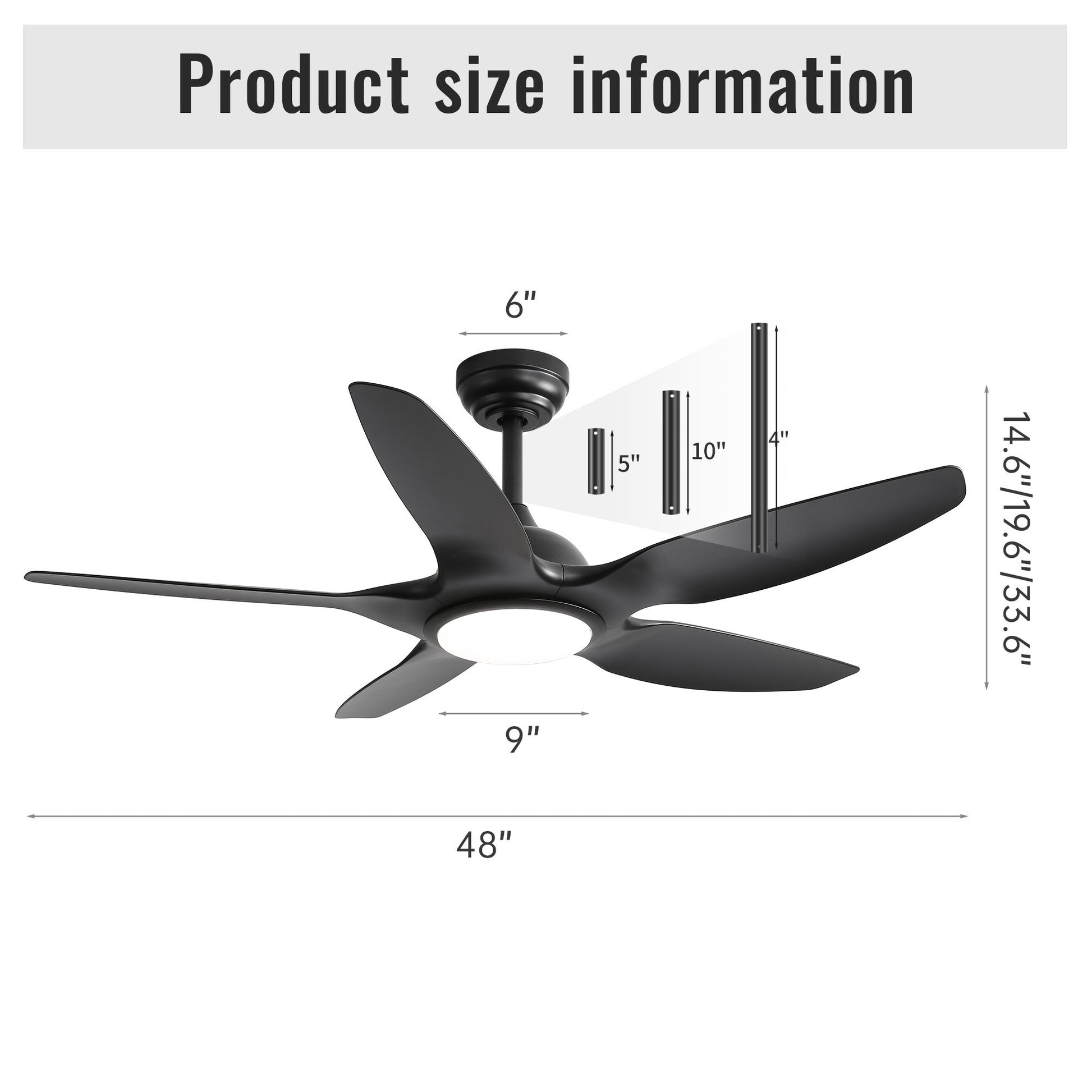 Indoor Ceiling Fan With 5 ABS Blades Remote Control Reversible Dc Motor For Living Room - Black