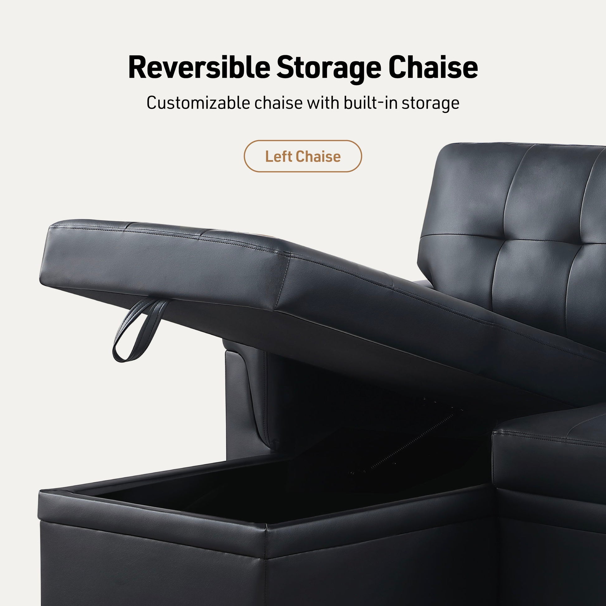 Lexi - Vegan Leather Modern Reversible Sleeper Sectional Sofa With Storage Chaise