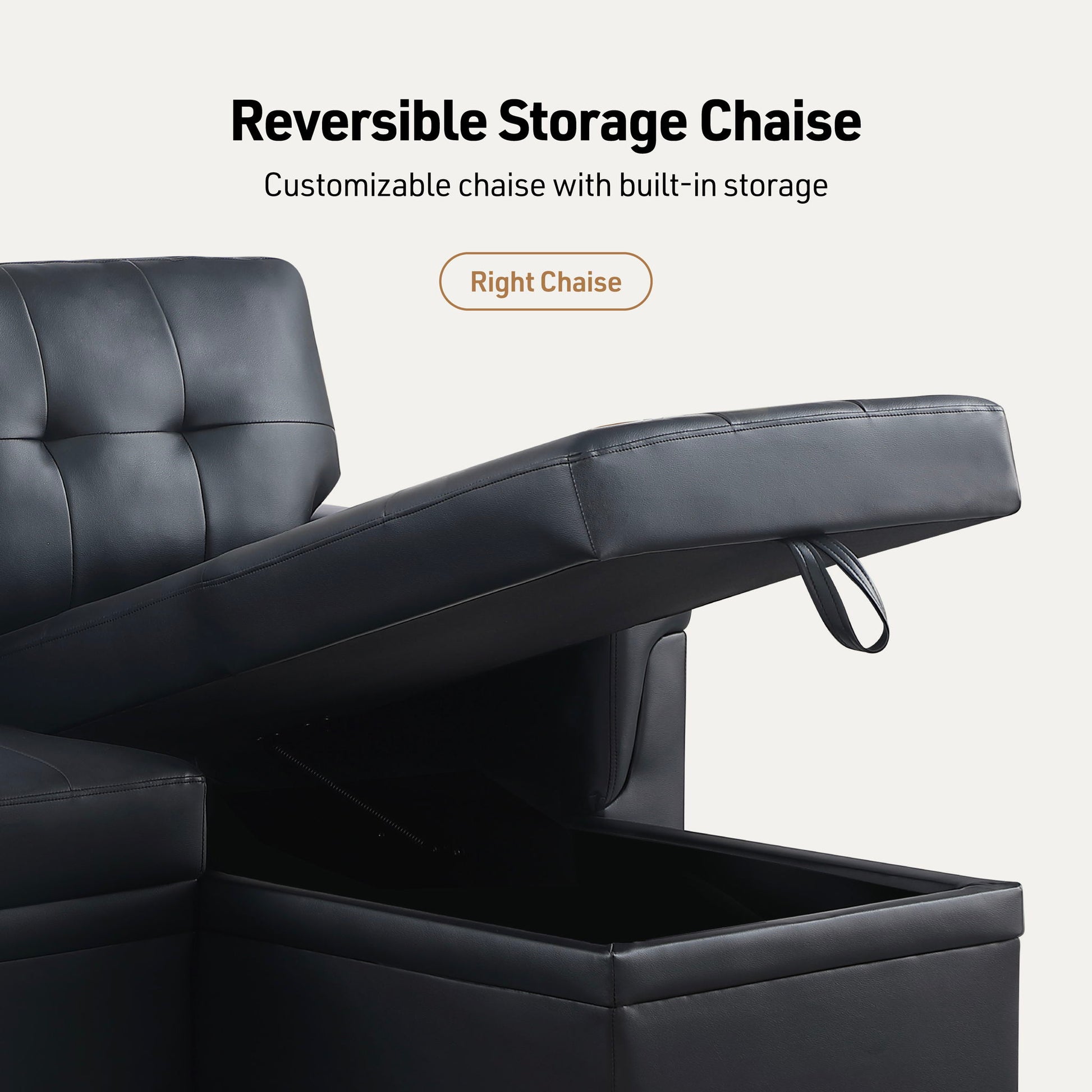 - The Lexi collection is the perfect size for versatility and comfort. This piece reversible sectional couch is easy to assemble with the choice for the chaise to be on either side! The added pull-out bed is a great way to elevate your comfort as you can relax and fall asleep after a long day. Need room to store those extra pillows and comforters? The chaise features a spacious storage underneath, giving you quick and easy access to your couch accessories. The Lexi collection is the perfect blend of comfort and functionality for your family and friends to enjoy together.