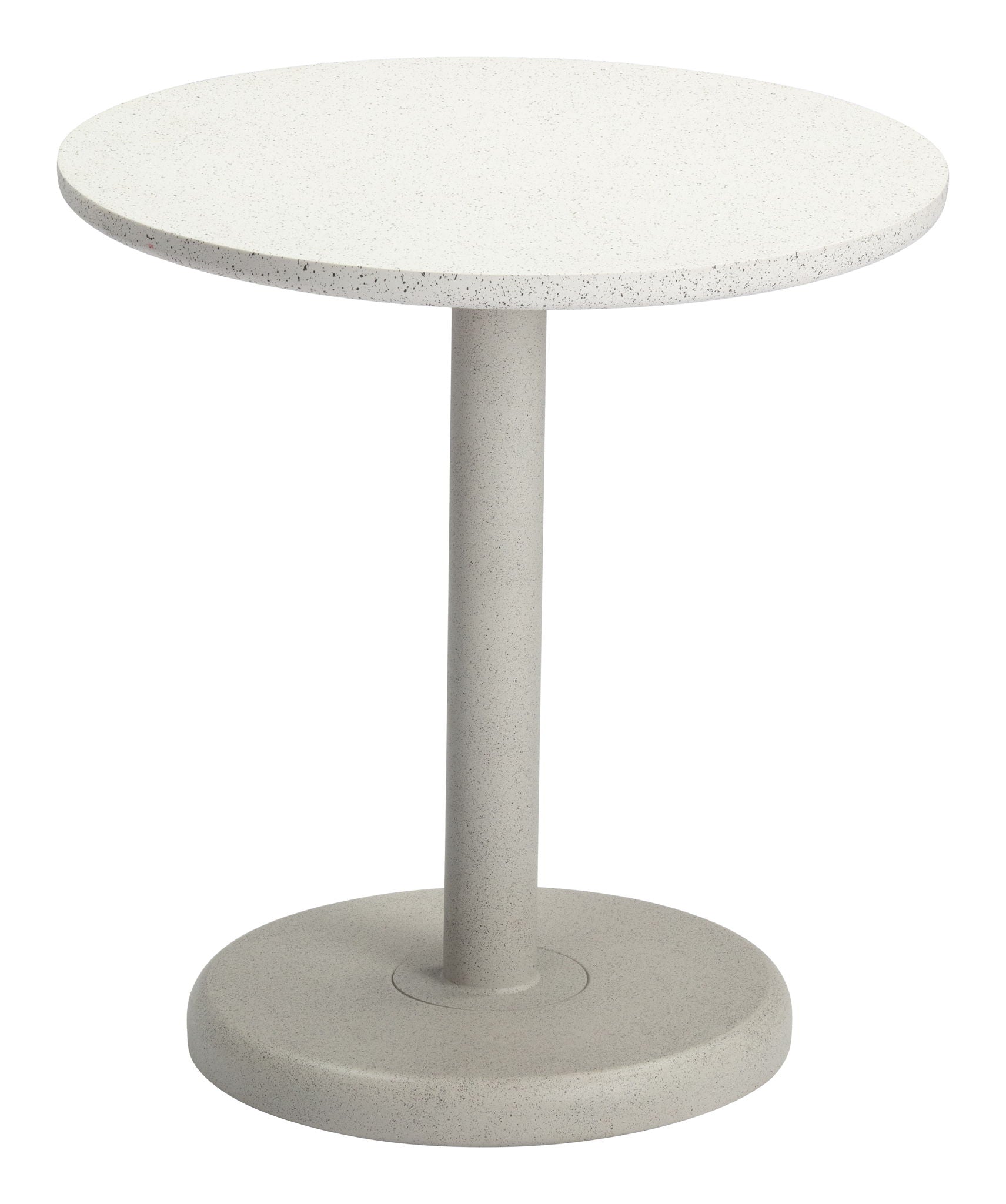 - Assembly required, Faux Terrazzo Poly Cement round shape tabletop, Seats up to 2, Weather resistant powder coated steel frame, Supports up to 110 lb