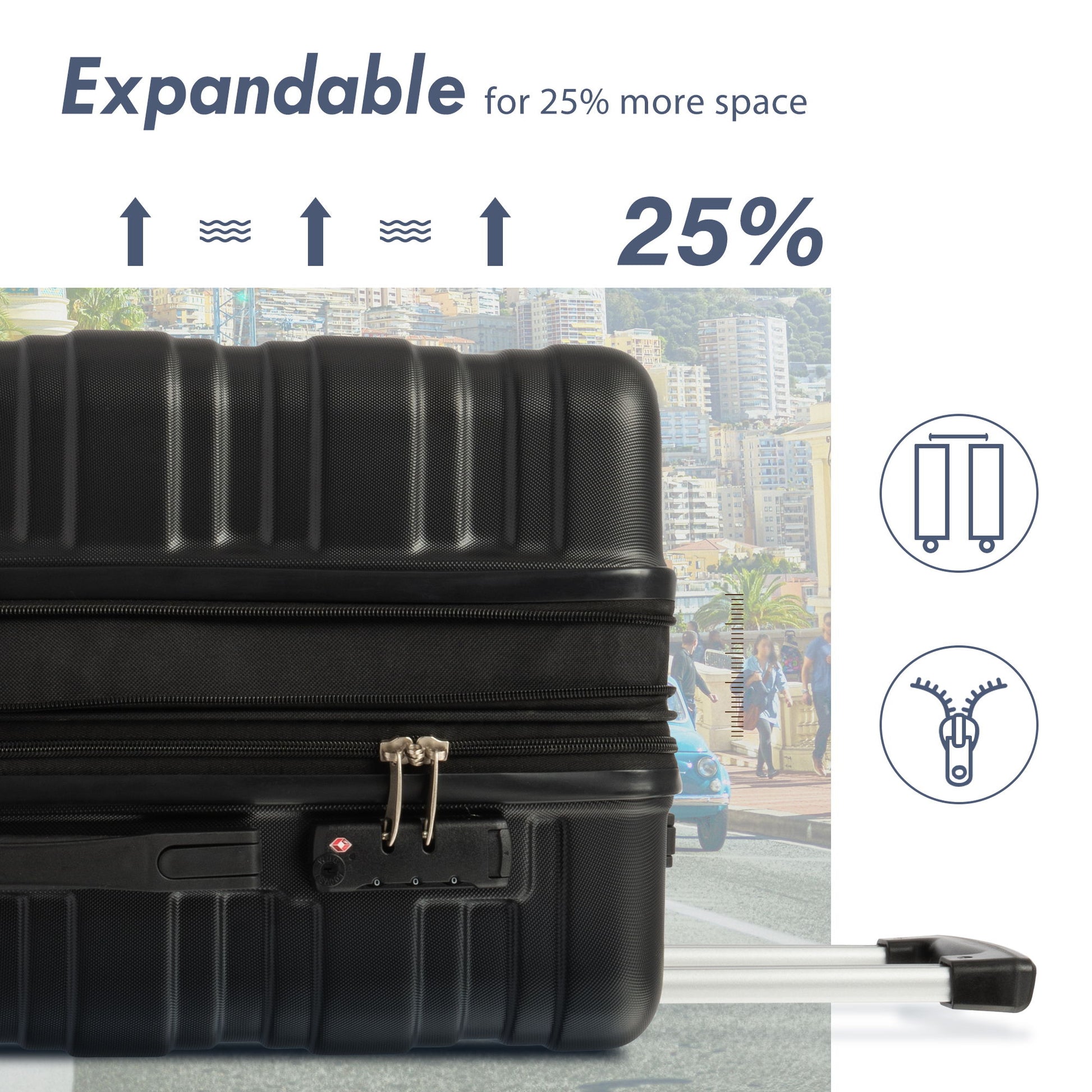 Luggage With Tsa Lock Spinner Wheels Hardside Expandable Luggage Travel Suitcase Check In Luggage ABS 24" - Black