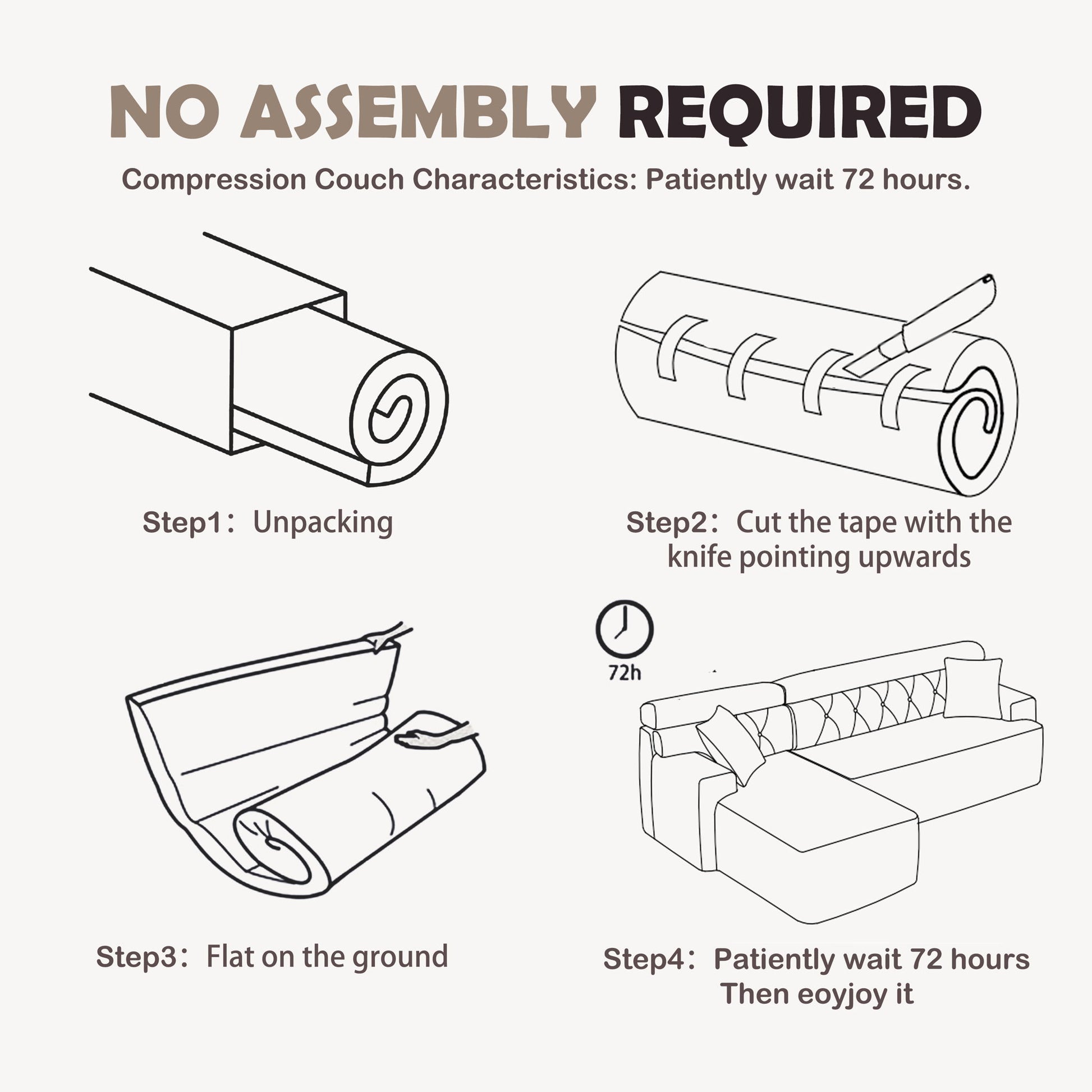 Ly 029B Convertible Chaise Sectional Sofa Full Compression Sponge Modular Couch Cloud 3 Seater Wood Grain Chenille 2 Pillows - Antique White