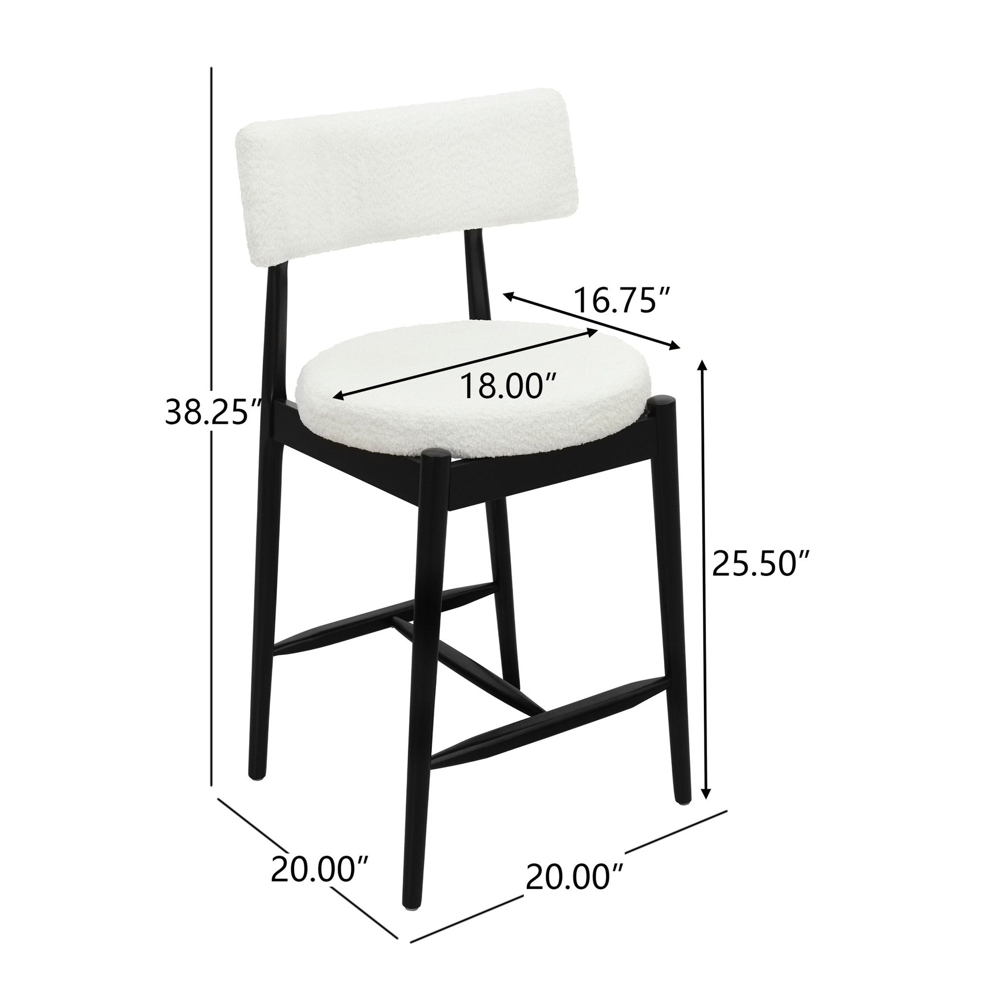Mid Century Modern Counter Stool (Set of 2) With Upholstered Seat - Black / Beige