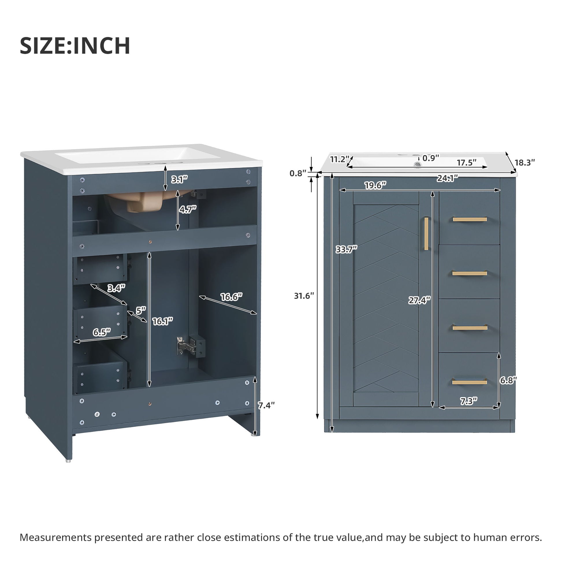 Bathroom Vanity With Integrated Sink, 1 Door 3 Drawers Cabinet - Blue