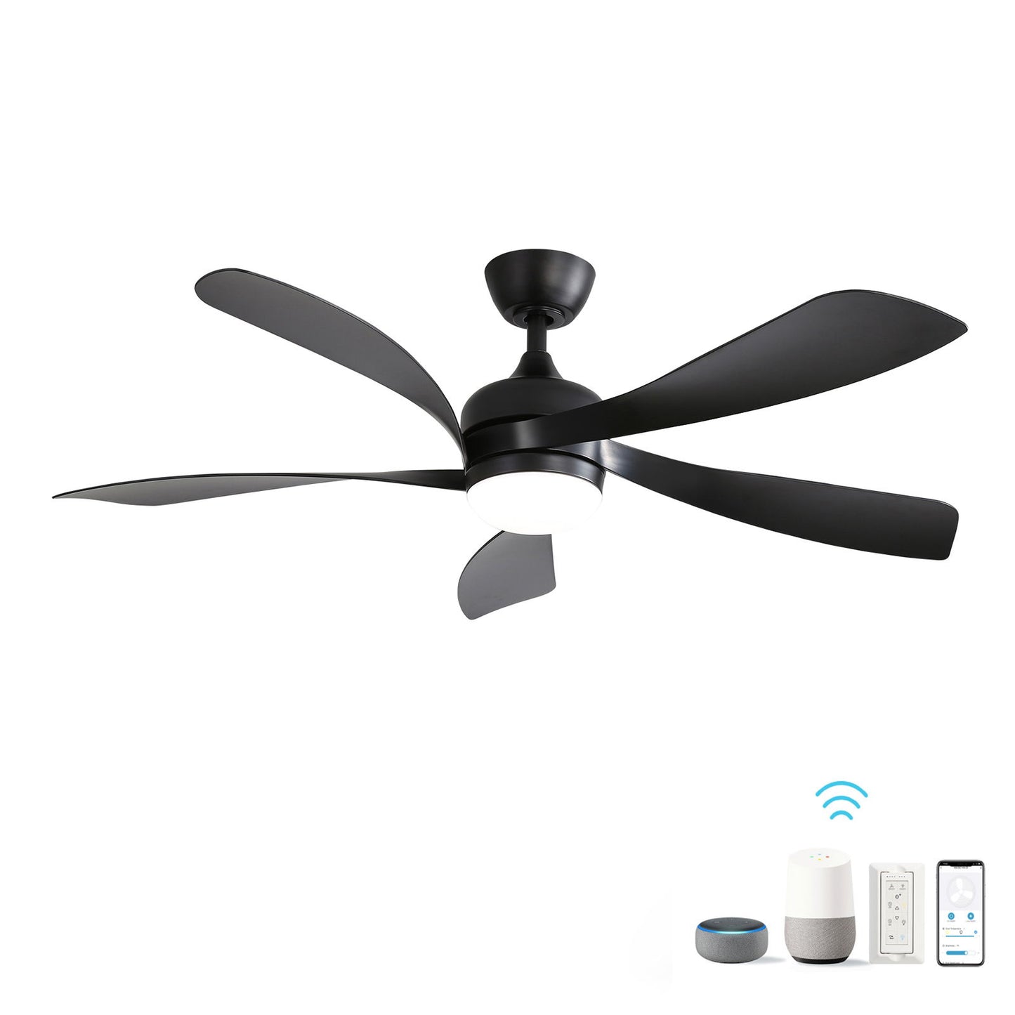 Modern Ceiling Fan With 3 Color Dimmable Light 5 ABS Blades Smart Remote Control Reversible Dc Motor - Black