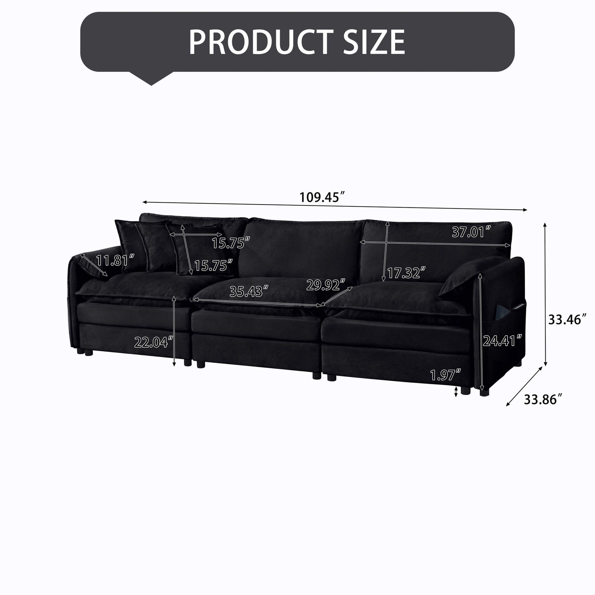 Modern Chenille Oversized Deep Seat Sectional Sofa, Large 3 Seater Modular With Pillows - Black